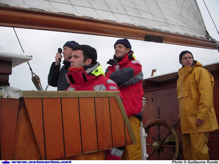 Le commandant de la Goélette Etoile, le lieutenant de vaisseau Laurent Matter lors du départ de la Transat J. Vabre ( novembre 2009)