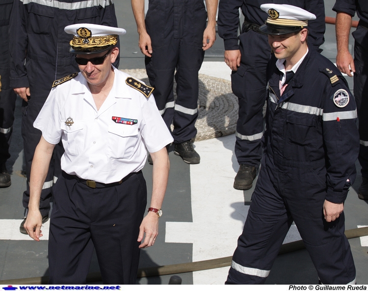 Le Chef d'Etat Major de la Marine, l'amiral Forissier, au cotè du lieutenant de vaisseau Marie commandant du PSP