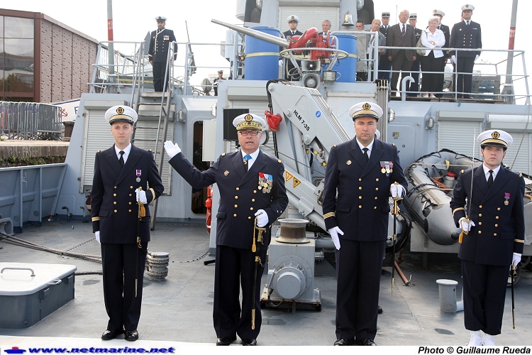 Le vice-amiral d'escadre Labonne fait reconnaître le lieutenant de vaisseau Nicolas Simon, successeur du lieutenant de vaisseau Olivier Alvarez comme commandant du patrouilleur de service public