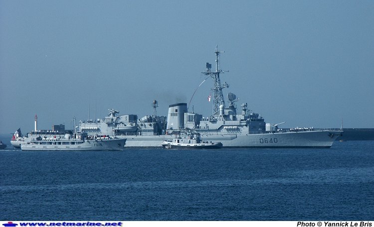 est de retour à Brest, salué par les familles et amis embarqués sur le transport de rade