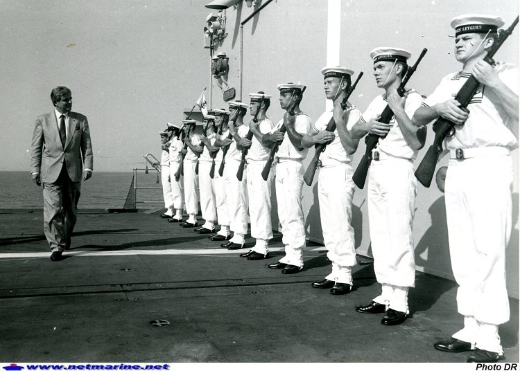 Le 4 septembre 1991, M. Jean-Pierre Chevènement inspecte la frégate