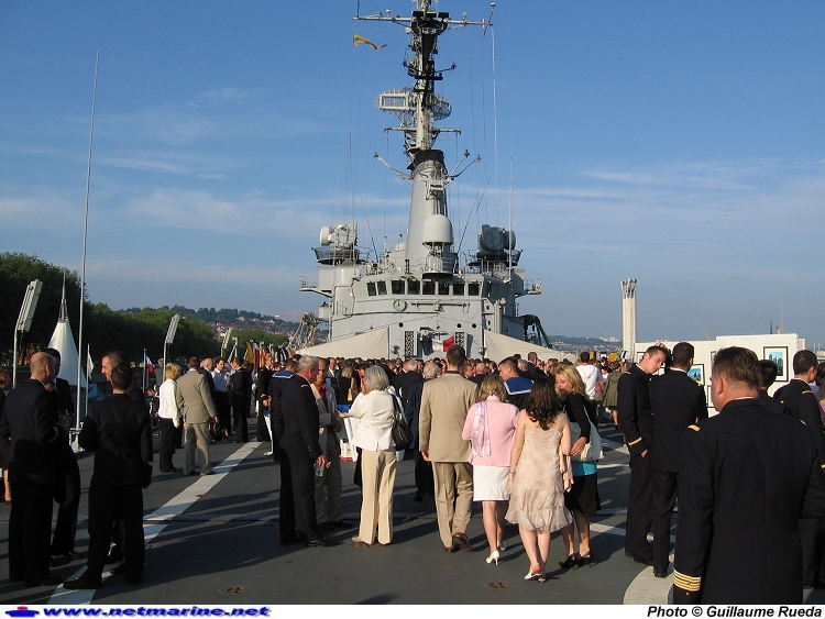 La foule était nombreuse lors du coquetèle organisé à bord du porte-hélicoptères Jeanne d'Arc, à Rouen. (30 mai 2008)
