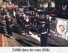 La Pérouse envoyèrent les couleurs. La cérémonie se concluait par une remise de décorations et un dépôt de gerbes. Le préfet remercia le CA (2S) Bonbon pour la qualité de la participation de la Marine. Un apéritif suivait à l'Hôtel de Ville, dans la salle des États albigeois où se tient une exposition sur la première guerre mondiale, avec une importante participation de la Marine. Tous les marins, d'active et de réserve, se retrouvaient ensuite avec leurs familles pour un déjeuner-buffet, au son de la musique du bagad du CIN de Saint-Mandrier. L'après-midi fut consacré à la visite du château du Bosc, dont les propriétaires, descendants de La Pérouse, offrirent le "rafraîchissement de l'amitié" avant le départ des marins invités. La présence de marins en uniforme dans la ville d'Albi aura sans doute eu un effet des plus bénéfiques pour l'image de la Marine dans une région dépourvue de BICM, à la plus grande satisfaction de tous et spécialement de M. Roger Raffanel, président des anciens marins d'Albi, dont la ténacité a permis d'organiser cette cérémonie. La présence du LV Steffe et des marins qui l'accompagnaient a non seulement réjoui les anciens, mais elle les a également incités à soutenir la Marine dans l'évolution qu'elle connaît actuellement. (Cols Bleus n°2472 janv. 1999 - photos Marine nationale)
