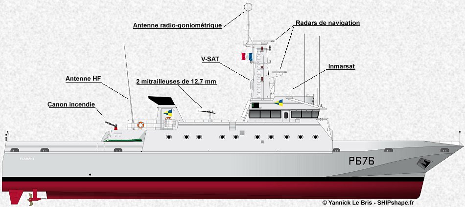 Guillaume Rueda et Jean-Michel Roche pour Net-Marine © 2012. Dessin © Yannick Le Bris. Photos © G. Rueda. Sources : Flottes de combat 2000, plaquette de présentation du bâtiment. Copie et usage : cf. droits d'utilisation.