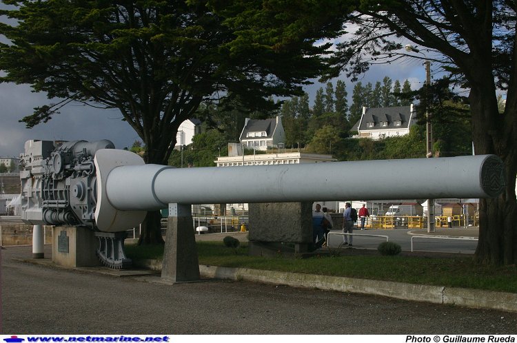 Un canon de 380 mm du Richelieu aujourd'hui exposé le long de la Penfeld à la Base Navale de Brest. (Juillet 2004)