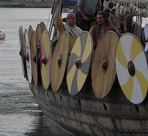 un grand boucliers ovale ou rectangulaire dont on garnissait le bord