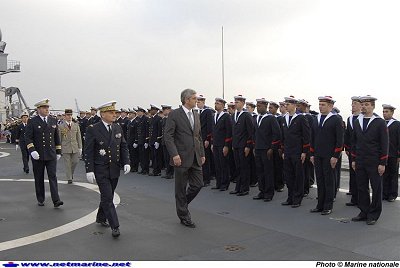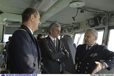 A bord, le ministre de la Défense Hervé Morin et le chef d'état-major de