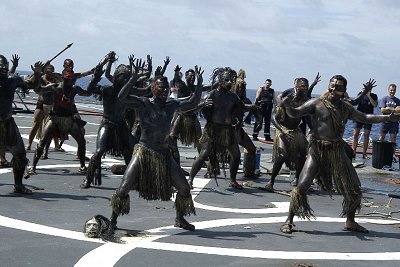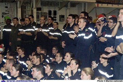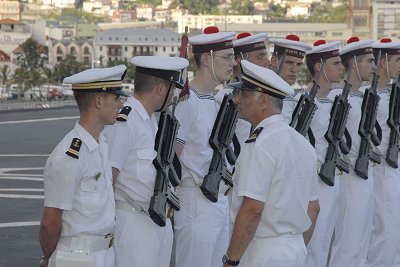 d'appareillage. Après la revue des troupes sur le pont d'envol en milieu