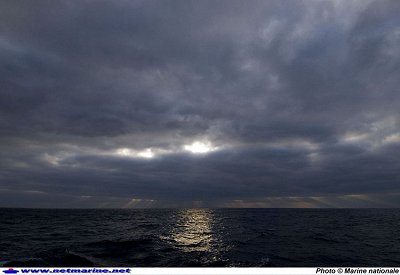 du porte-hélicoptères, la luminosité ne varie guère et l'arrivée de la nuit
