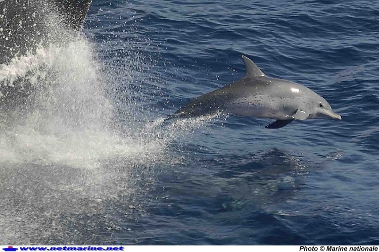Un dauphin salue l'arrivée du GEAOM dans les eaux Caraibes (9 janvier 2008 photo MP Le Ny)
