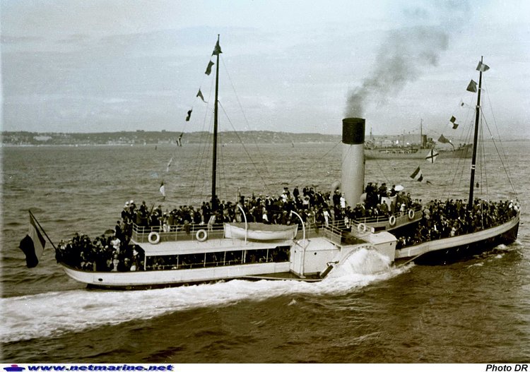 Des vapeurs transportent les Havrais en rade, lors de la « Grande Semaine Maritime » le 25 juillet 1921. Quelqu'un reconnaît ce bateau ? (photo collection particulière).