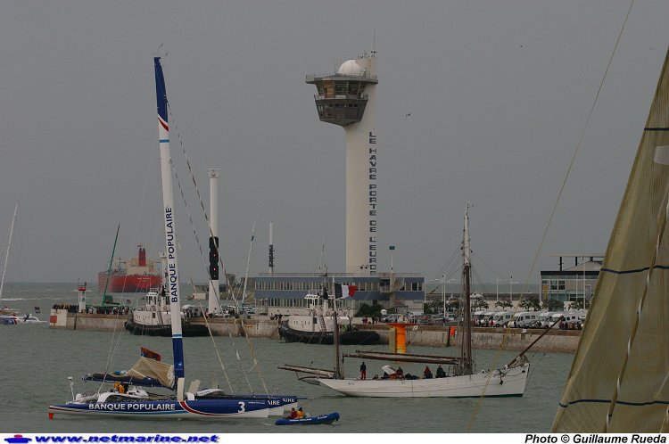 au coté du trimaran Banque populaire dans le port du Havre quelques heures avant le départ de la