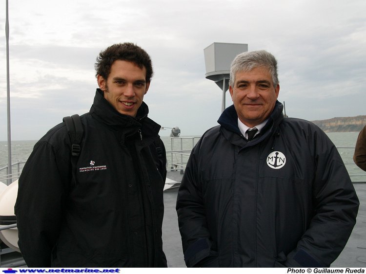 Le nageur - médaillé de bronze olympique - Hugues Duboscq au coté du CV Alain Doucet - COMAR Le Havre - à bord du