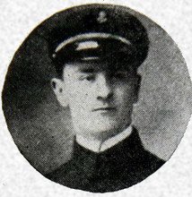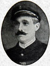 A fait preuve du plus grand sang-froid au moment de l'explosion d'une mine qui a fait sombrer son torpilleur et a pu, grâce aux mesures judicieuses qu'il a prises avec décision, assurer le sauvetage de la plus grande partie de son équipage. A montréune abnégation digne d'éloges, en abandonnant, bien que nageur ordinaire, le baril-galère qui le soutenait à un de ses hommes sur le point de couler.